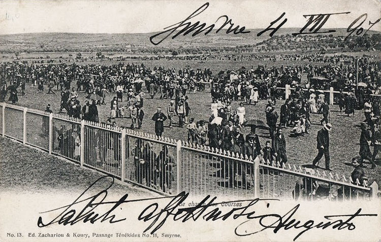 OSMANLI’DAN MODERN TÜRKİYE’YE AT YARIŞLARI Yıl 1856 İzmir’de ilk Organize at yarışları Detaylı çalışmalar yapıldığında görülüyor ki İzmirli Levantenler tarafından organize edilen at yarışlarının geçmişi 1840’lı yıllara kadar dayanır. O yıllarda belli bir takvime bağlı kalınmaksızın önemli günlerde ve özellikle paskalya şenliklerinde at yarışları düzenleniyordu. İzmir’in Levanten aileleri bu yarışlara çok önem veriyor, mutlaka katılıyor, özellikle Giraud Ailesi, Charlton Whittall ve İskoçyalı James Borthwick Paterson at yarışlarına özel ilgi gösteriyorlardı. O tarihlerde hem Charlton Whittall’ın hemde James Bortwick Paterson’un birer at harası vardı. Withall harasının daha sonra evlerinin yanındaki haralarını Şirinyer’e taşıdı. İzmir özellikle 17- 19. yüzyıllarda Levantenlerin yoğun olarak yaşadığı bir şehir hâline gelmişti. Bu dönemde İzmir'in önemli bir ticaret merkezi olmasında ve ticaret hayatının gelişmesinde Levantenler önemli bir yol oynamışlardı. Osmanlı İmparatorluğunda yaşayan çeşitli milletlere mensup yabancılar Osmanlıların kendilerine tanıdığı ticari ayrıcalıklar nedeniyle önemli bir ekonomik gücü ellerine geçirmişlerdi. Bu yabancı aileler içinde en önemlileri Smyrna Racing Club’un kuruşunda önemli roller oynamışlardı. Whithall ailesi Levantenlerin en önemlilerinden olup bu aile içinde 1809 yılında bir İngiliz ticaret şirketi (Breed et Co.) tarafından İzmir’e gönderilen, Liverpollu tüccar Charlton Whithall At yarışlarıyla çok ilgilenmişti. Charlton, Giraud ailesinin evlerinden birini kiralayarak Bornova’ya yerleşmişti. Hemen arkasından kardeşi James ve diğer aile üyeleri geldiler ve İzmir’e yerleştiler. Whithall ailesi zamanla diğer Levanten ailelere de örnek olmuştu. Özellikle Fransa’dan birçok kişinin bu şirket aracılığıyla İzmir’e yerleşme imkânı bulduklarını biliniyor. İzmir’de git gide büyüyerek ticari bir imparatorluk hâline gelen Whithaller yarışlara sponsor olması ile İzmir At Yarışlarının gelişmesinde önemli rol almışlardır. Diğer bir Fransız aile Giraudlar, İzmir’in köklü ailelerinden biridir. Ailenin tarihi, özel arşiv ve yaşayan aile üyeleri ile yapılan sözlü tarih çalışmasına göre, 1760’lı yıllarda İzmir’e yerleşen tüccar ve armatör Jean Babtiste Giraud ile başlamaktadır. Babtiste İzmir’e yerleşikten sonra kendi şirketini kurmuş, 1780’li yılların sonlarına doğru, kendisi gibi İzmir’de yaşayan Venedik Konsolosu Lukas Cortazzi’nin kızı ile evlenir. Giraud zamanla İzmir’in en zengin tüccarlarından birisi olmuştur. Bu ailelerin sadece İzmir’in değil Türkiye’nin de sanayi uygarlığına girişte büyük rol oynadıklarını belirtmek gerekir. Bu ailelerin İzmir’de At Yarışlarının başlamasında çok büyük destekleri vardır. Sultan Abdülaziz’in İzmir Ziyareti Sultan Abdülmecid 1863 yılında Mısır seyahatinden dönerken İzmir'e geldiğinde Whittall ailesine ait Büyük Ev'i ziyaret etmişti. Padişah, köşk bahçesinin girişinde Charlton Whittall'un yerel giysiler içindeki iki gelini Magdelen Blanche ve Elise tarafından karşılanmış, kendisine gümüş bir tabla içinde köşkün anahtarı sunulmuştu. Şu anda Ege Üniversitesi rektörlüğü olarak hizmet veren köşk, 1800’lerin başlarında inşa edilmişti. Köşk ailenin sahip olduğu itibar sebebiyle 1863 senesinde Sultan Abdülaziz ziyaret ettikten sonra 1886 senesinde Edinburg Dükü Alfred Ernest Albert ve beraberindeki -1910 yılında George V. Adıyla İngiliz tahtında yerini alacak olan– George Frederick Ernest Albert ve 1921 senesinde ise Yunan Prensi Andrew gibi önemli kişilerce ziyaret edilmiştir. Köşkün mülkiyeti akrabaları olan Giraud ailesine geçmiş ve 1960 yılında kamulaştırıldıktan sonra Ege üniversitesine tahsis edilmiştir.
