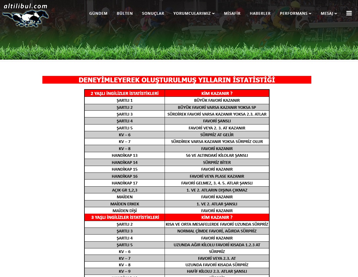 Yılların deneyimiyle koşu, sınıf ve şartlarına göre oluşturulmuş kazanan at istatistiği sayfamızı size sunuyoruz,inceleyin kazanın...!