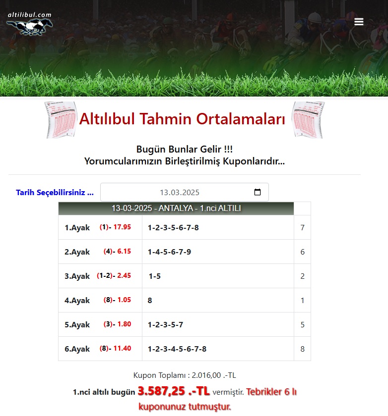Site yorumcularımızın birleştirilmiş kuponları her gün ana sayfamızda ki linkten yayınlanmaktadır .Sizlere bu kuponlarda haliyle gelmeyecek atları veriyor olacağız .